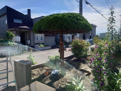 のこぎりを使いながら、下の段から枝を切っていきます。
