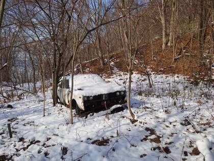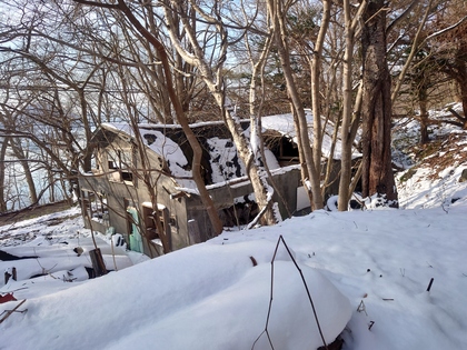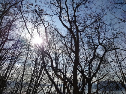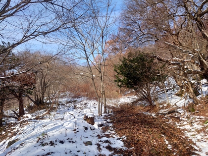 葉が落ちて、雪が少し積もった杜は、